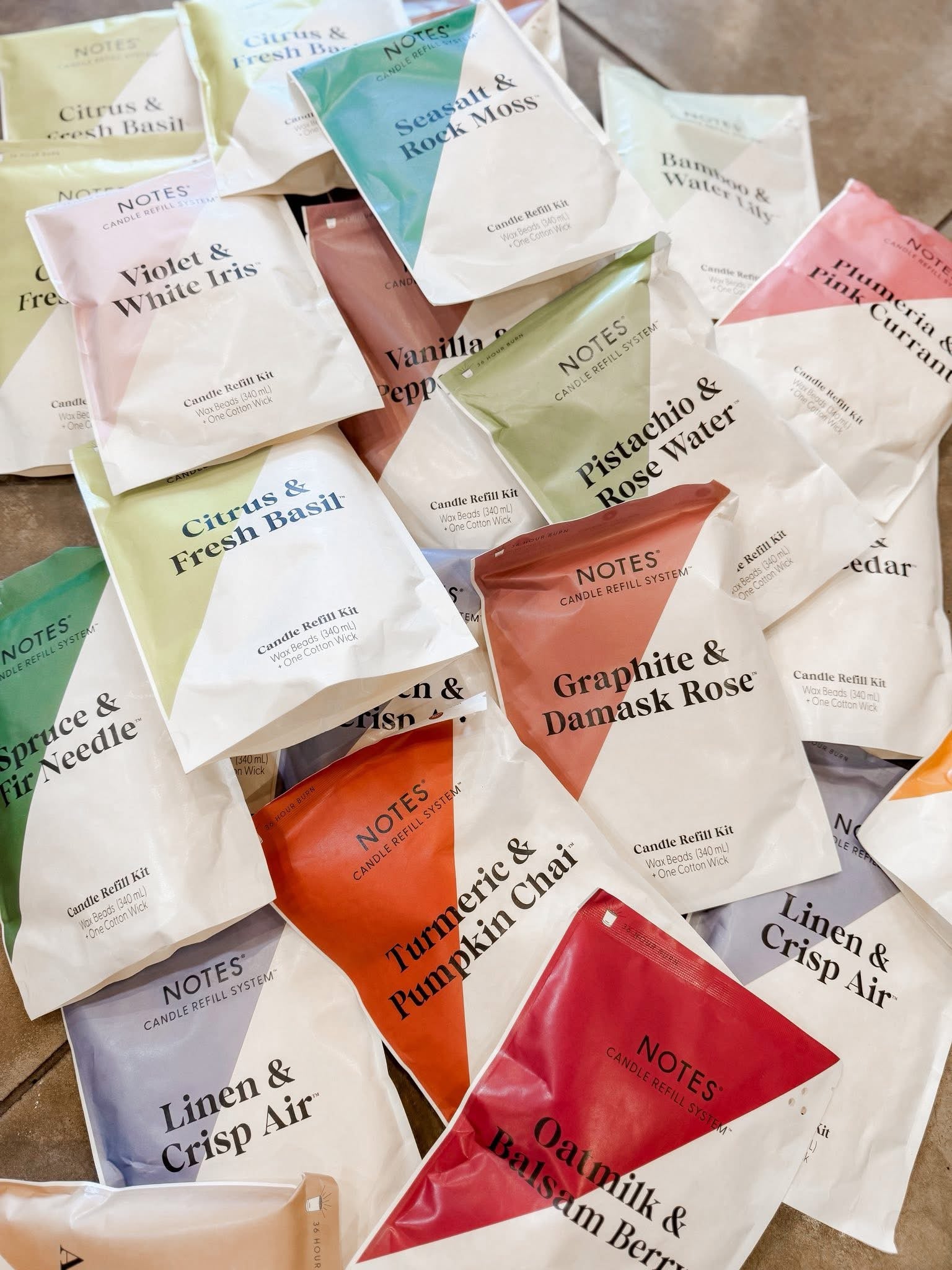 Each Candle Refill Kit includes a perfectly portioned bag of fragranced wax beads and a lead-free, cotton wick. Use this kit with your Starter Candle glass. 100% natural ingredients and contains no harsh chemicals, phthalates, parabens, dyes, or petroleum wax. Each candle offers a clean, even burn for up to 36 hours, and every bag includes step-by-step instructions to make refilling simple and mess-free.