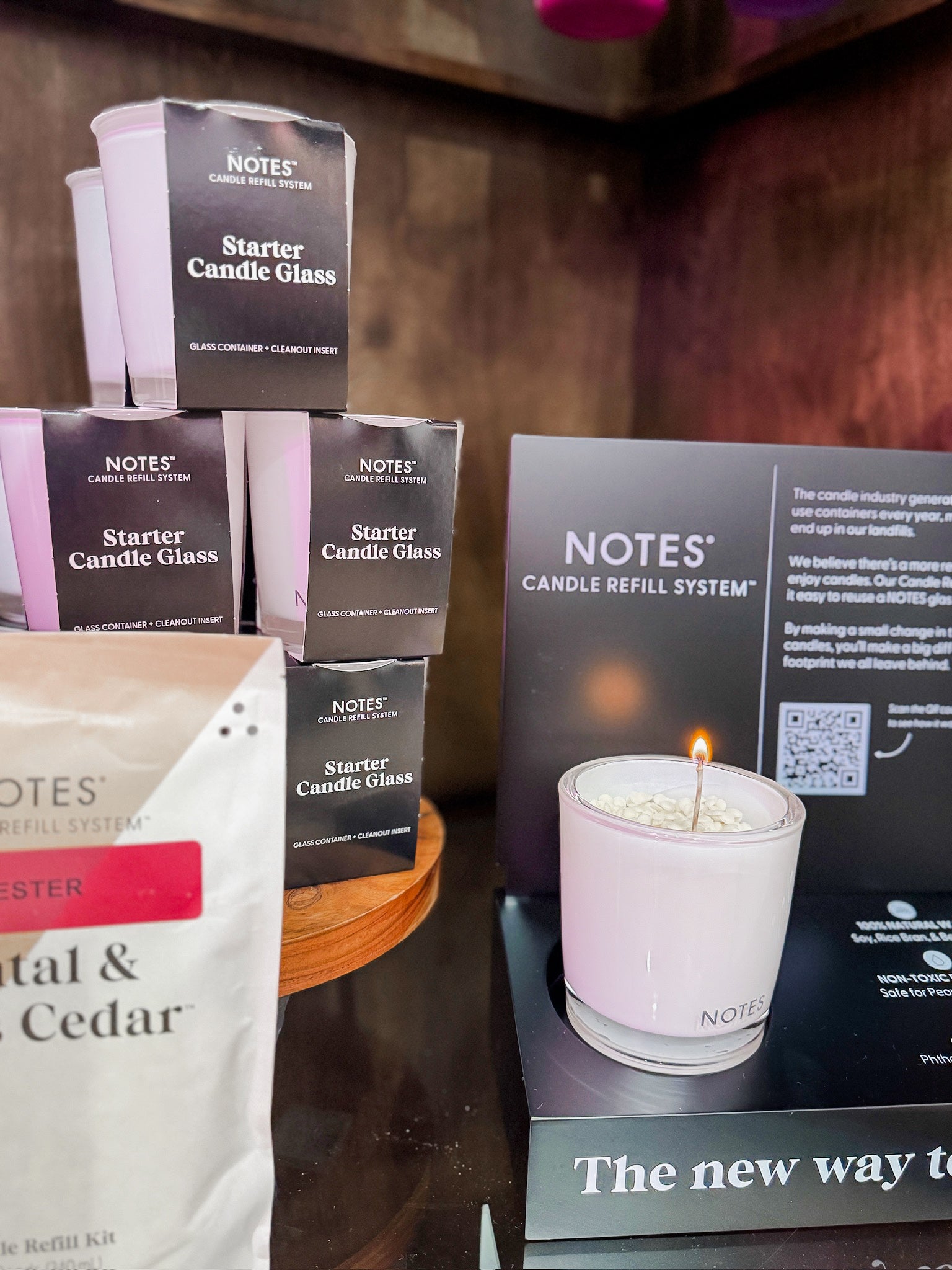 NOTES® Candle Refill Kits are made to only be used with the NOTES® Sustainable Starter Candle Glass. This product has been tested and designed to be safely used over and over again (something that regular candle vessels likely aren’t).