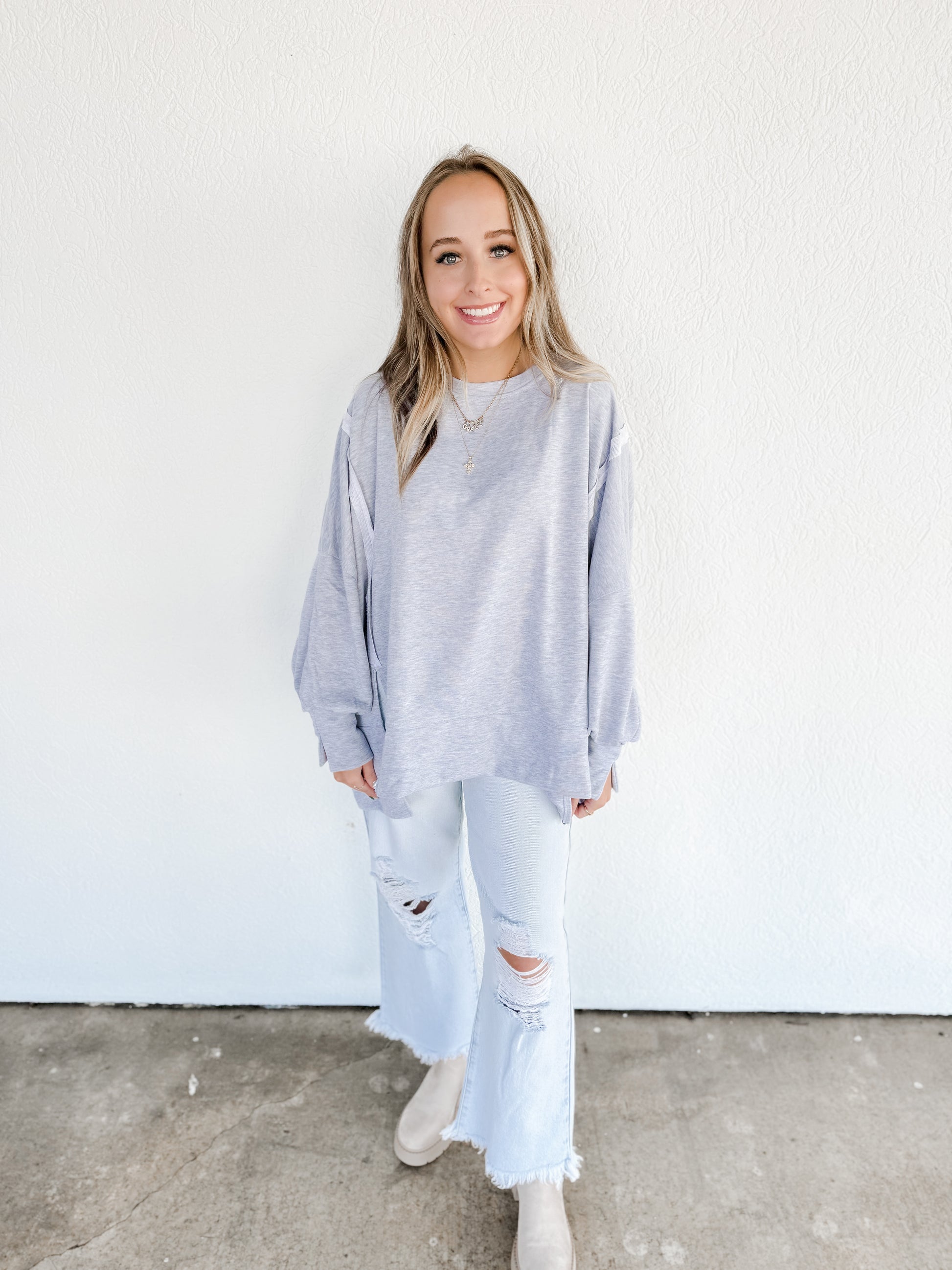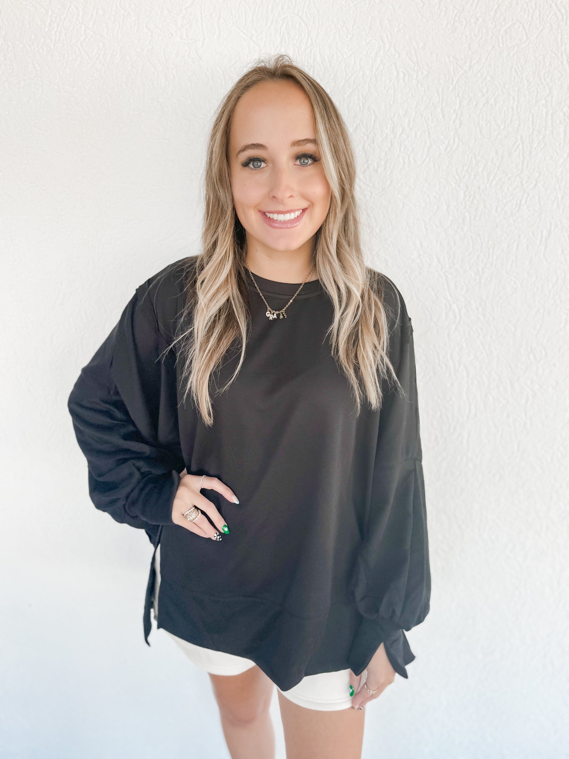 French Terry long balloon sleeve top