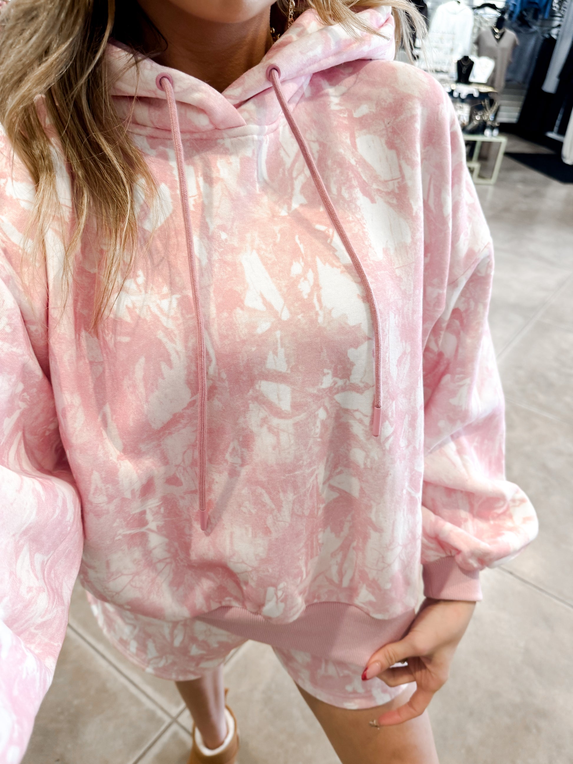 Pink camo hoodie set: sold as a matching set, thick, soft, luxurious washed fabric for ultimate comfort. Shorts have pockets & a drawstring waist